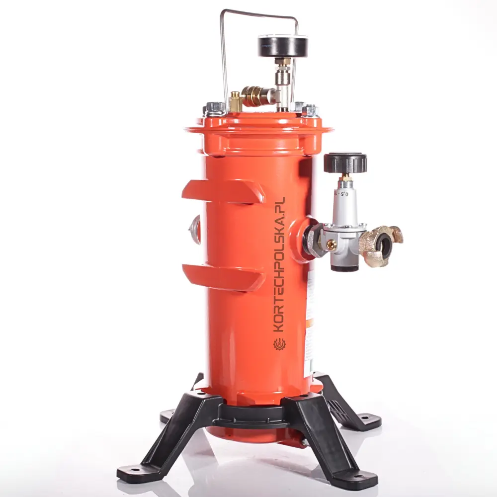 Za pomocą regulatora ciśnienia można zapewnić optymalne i stałe ciśnienie, aby zaopatrzyć hełm w powietrze do oddychania. Razem z hełmem oferuje to, co najlepsze możliwe bezpieczeństwo i dopływ powietrza do oddychania dla operatora, dzięki czemu może on w pełni skoncentrować się na procesie śrutowania. Dzięki niewielkim rozmiarom i stojakowi jest również niezwykle mobilny i można go używać w dowolnym miejscu.