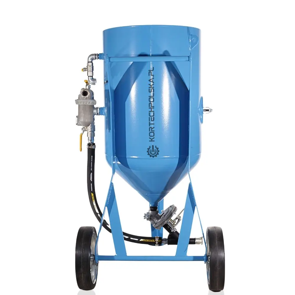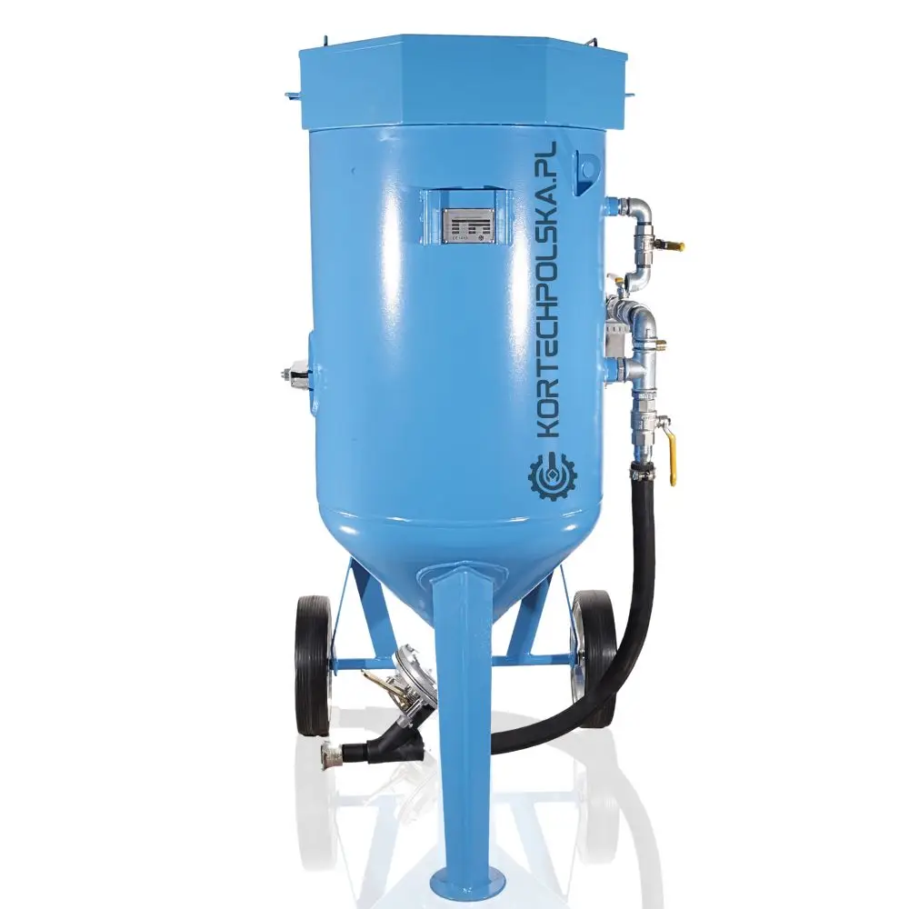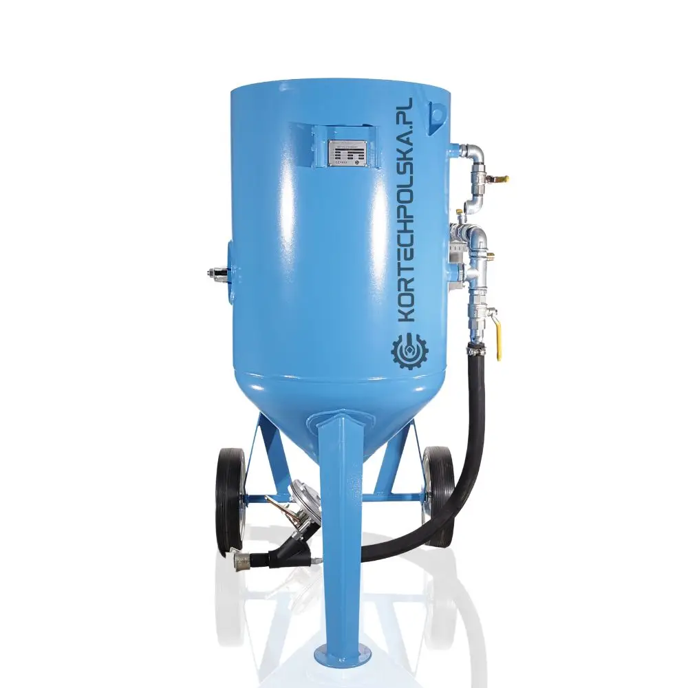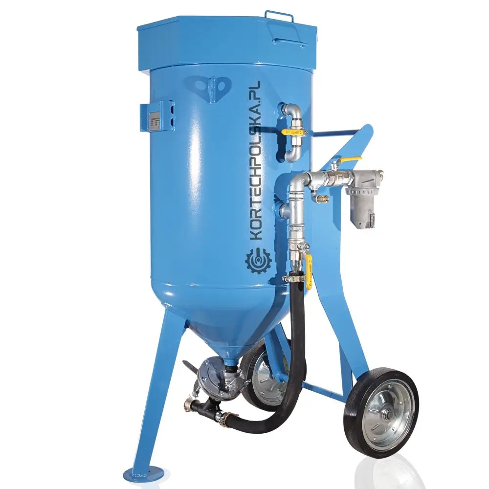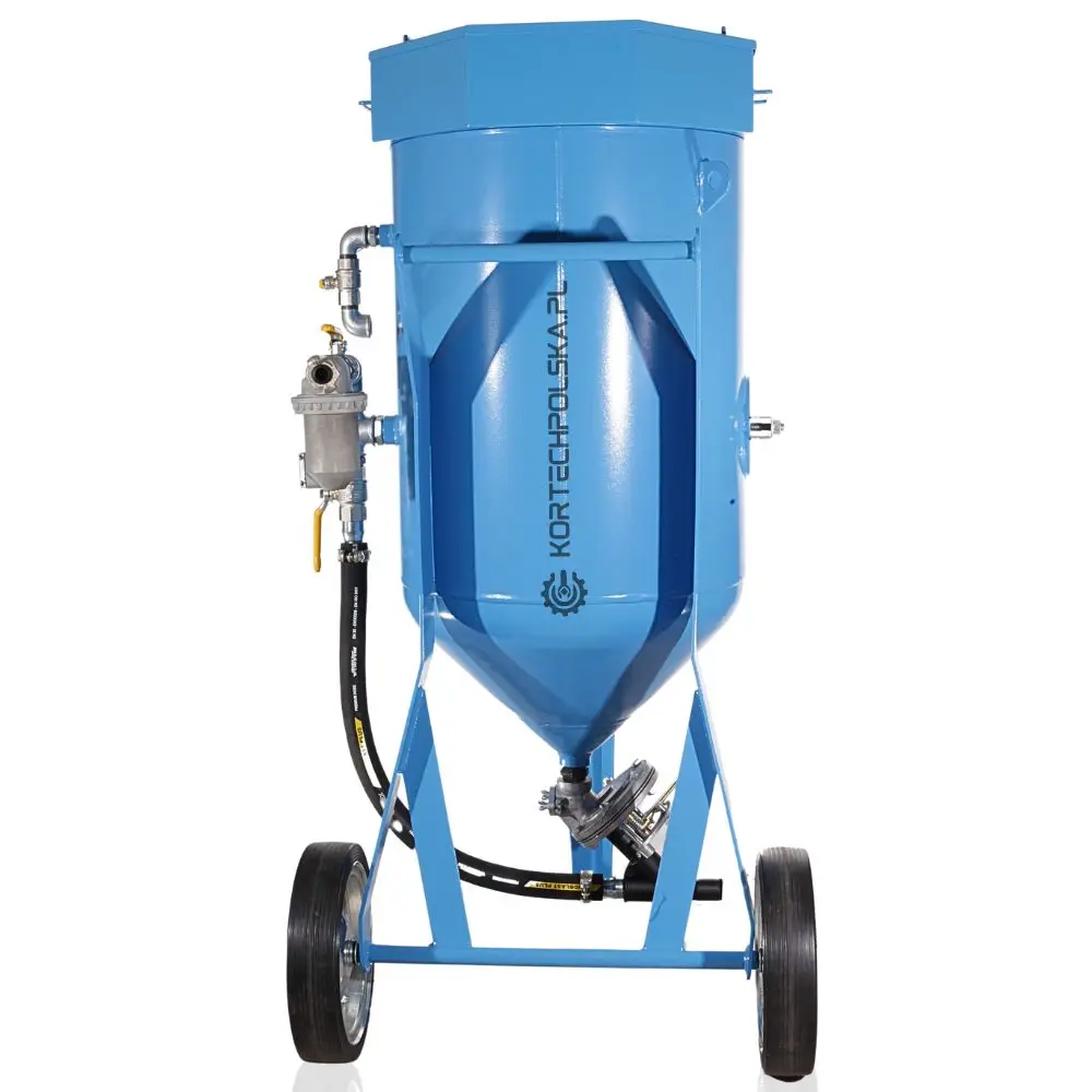 Piaskarka wyposażona jest w zbiornik ciśnieniowy z dnem stożkowym ułatwiającym zsuwanie się ścierniwa oraz rewizyjnym spustem umożliwiającym wgląd i szybkie opróżnienie zbiornika ze ścierniwa. Zastosowany zawór ścierniwa MICRO się niebywałą wytrzymałością, precyzją dozowania i niezawodnością w porównaniu do konkurencji.