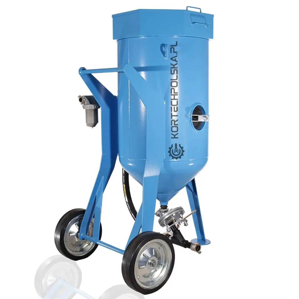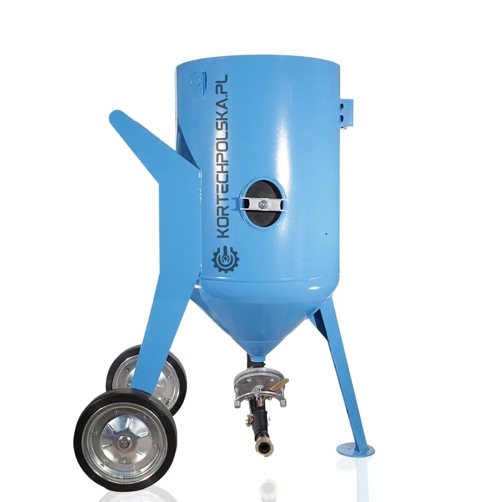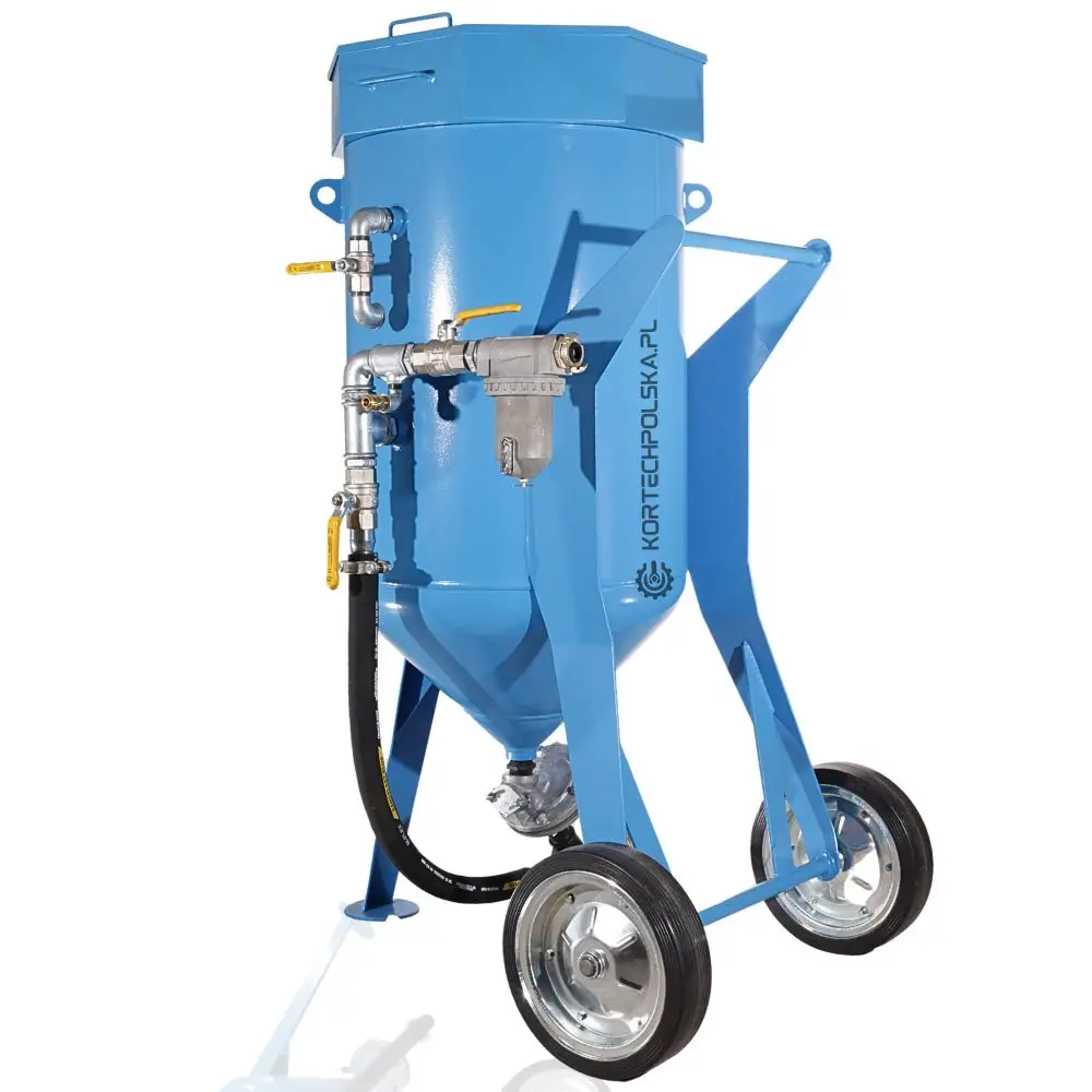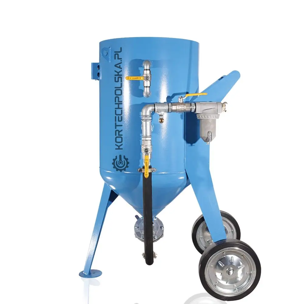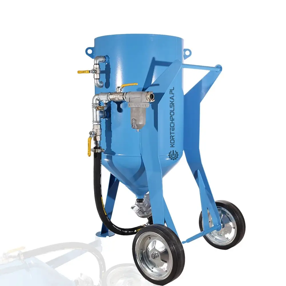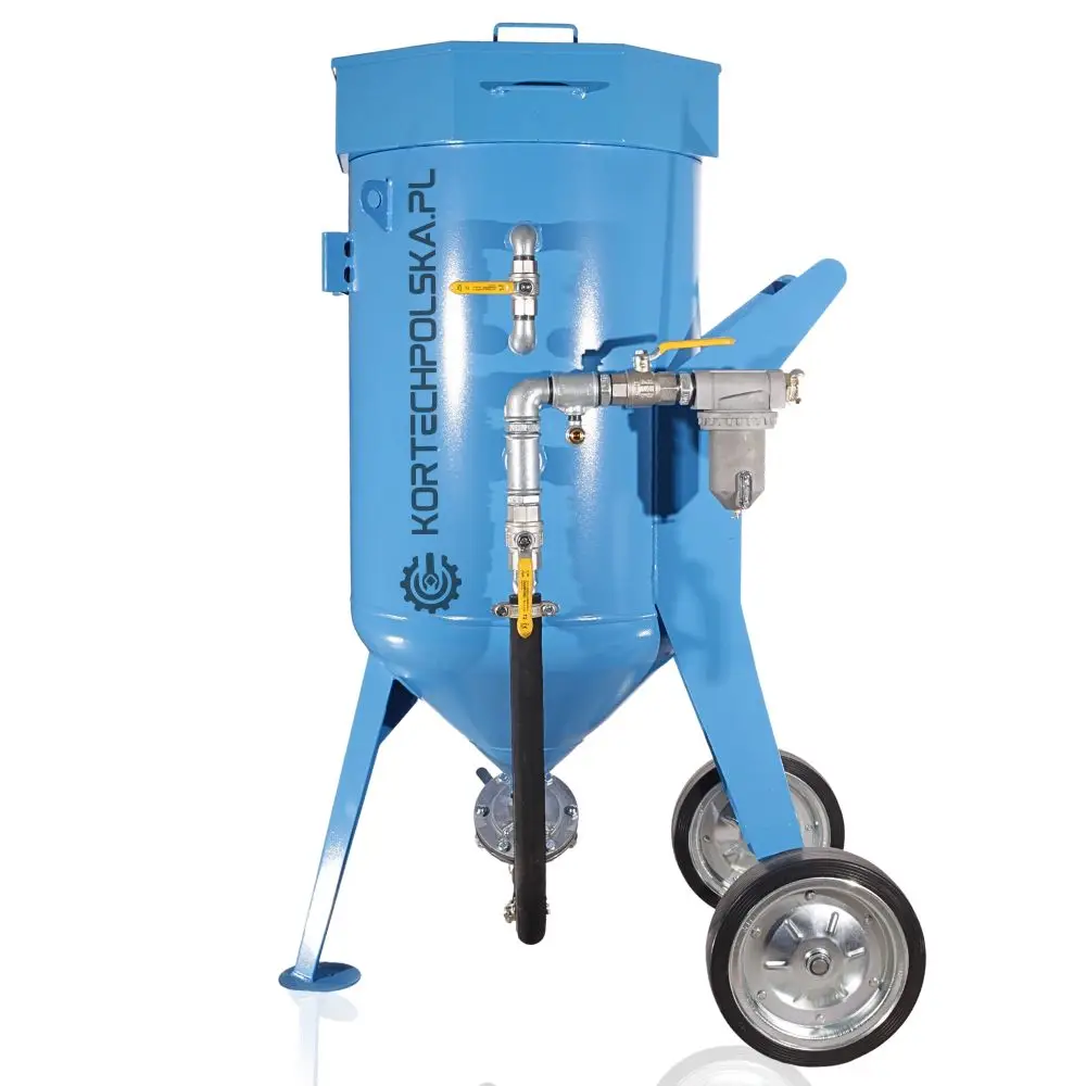 Piaskarka wyposażona jest w zbiornik ciśnieniowy z dnem stożkowym ułatwiającym zsuwanie się ścierniwa oraz rewizyjnym spustem umożliwiającym wgląd i szybkie opróżnienie zbiornika ze ścierniwa. Zastosowany zawór ścierniwa MICRO się niebywałą wytrzymałością, precyzją dozowania i niezawodnością w porównaniu do konkurencji.
