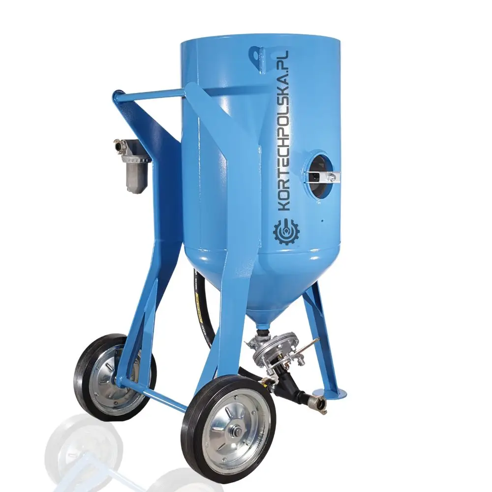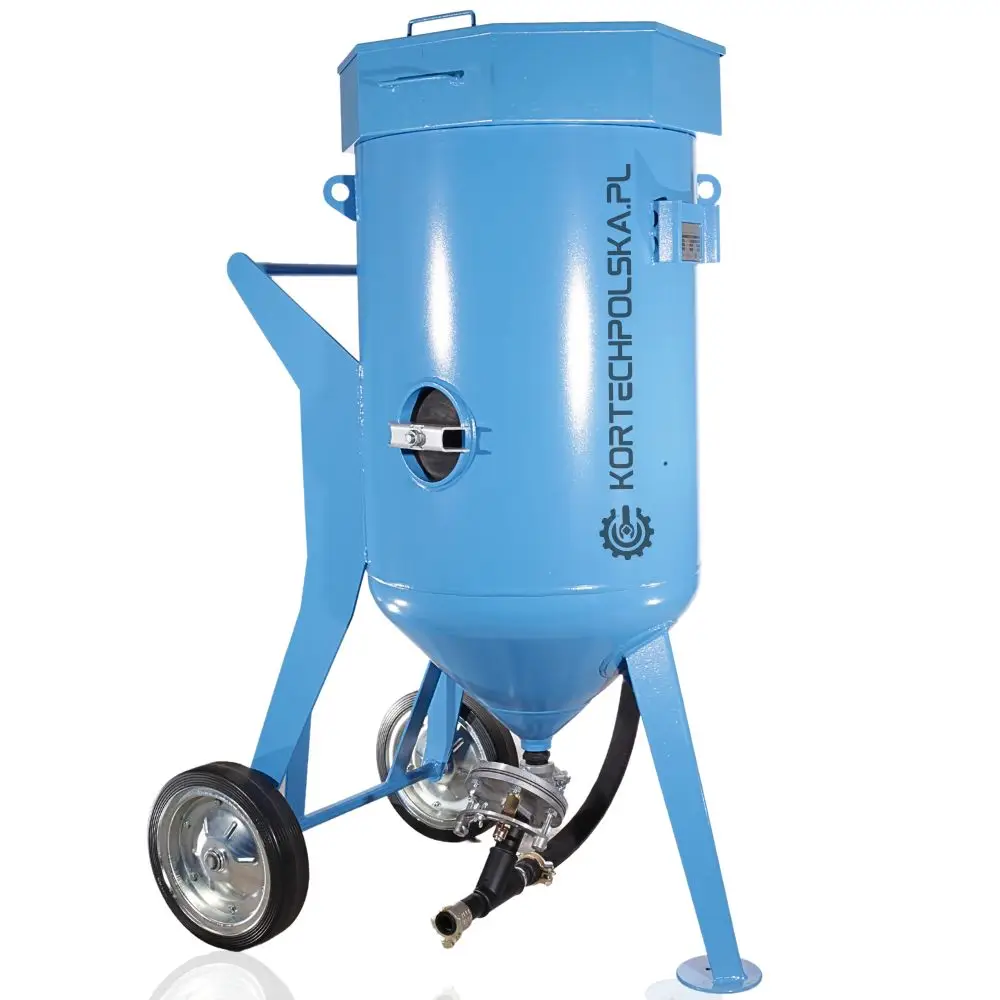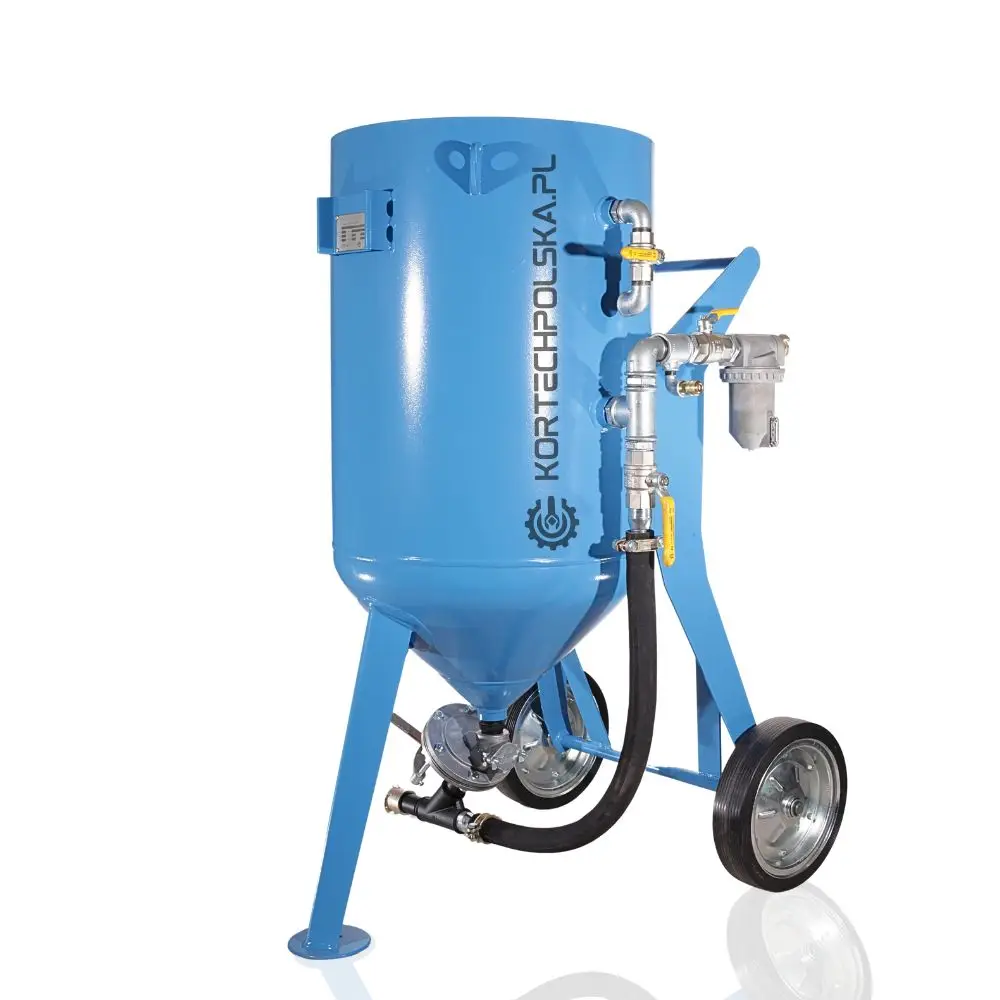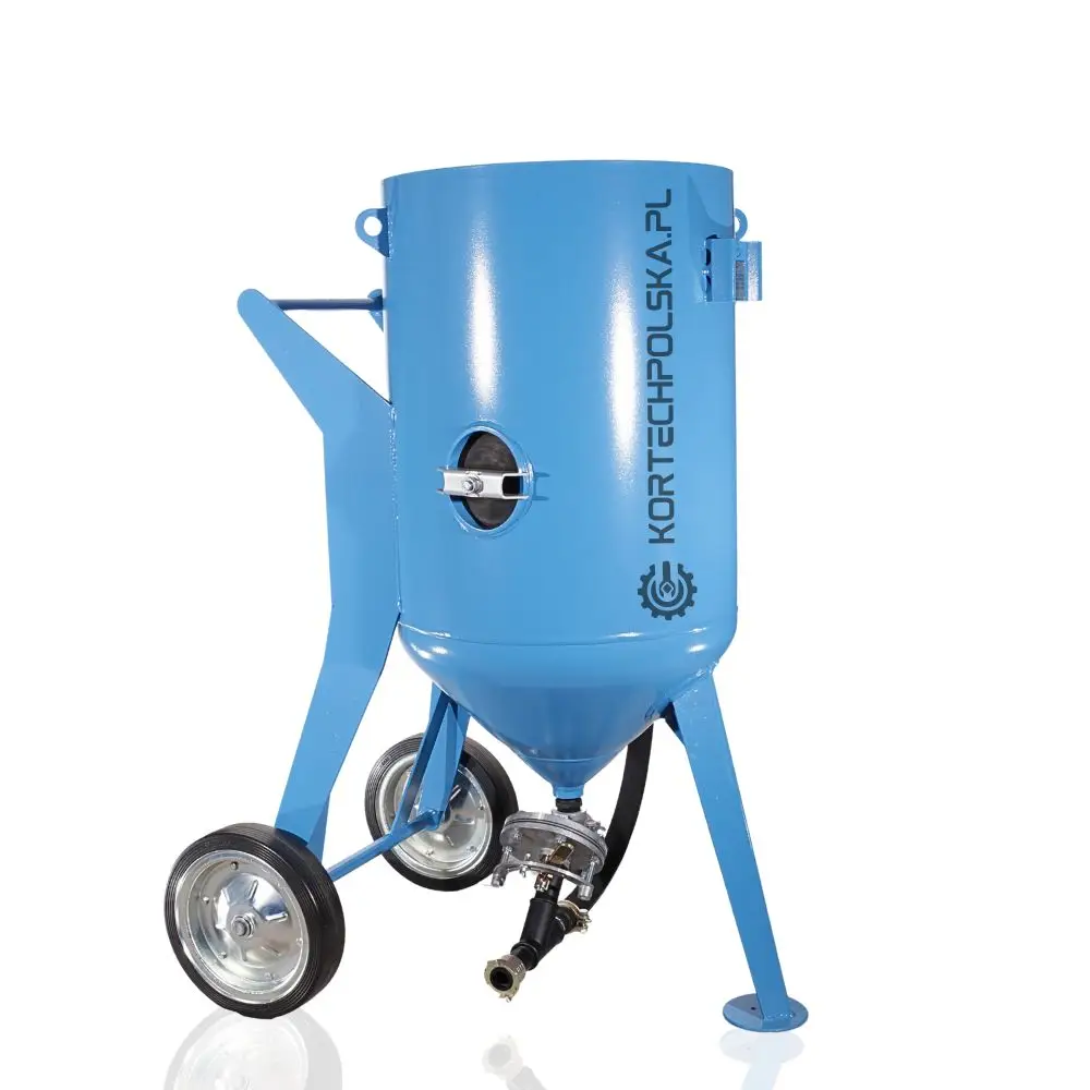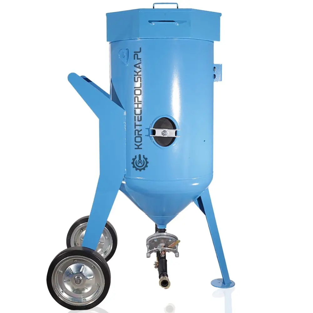 Piaskarka wyposażona jest w zbiornik ciśnieniowy z dnem stożkowym ułatwiającym zsuwanie się ścierniwa oraz rewizyjnym spustem umożliwiającym wgląd i szybkie opróżnienie zbiornika ze ścierniwa. Zastosowany zawór ścierniwa MICRO się niebywałą wytrzymałością, precyzją dozowania i niezawodnością w porównaniu do konkurencji.