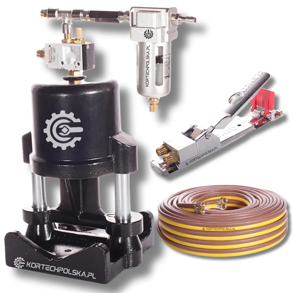 Zawór moździerzowy służy do usprawnienia piaskarek z ręcznym systemem sterowania montowany na wąż 32 mm. przez jego zaciskanie powoduje zatrzymanie pracy oczyszczarki, zaletą jest brak dekompresji zbiornika, a co za tym idzie brak strat powietrza. Montowany na wyjściu węża z piaskarki.